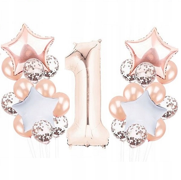 Набір повітряних куль ДЕНЬ НАРОДЖЕННЯ, рожеве золото на день народження