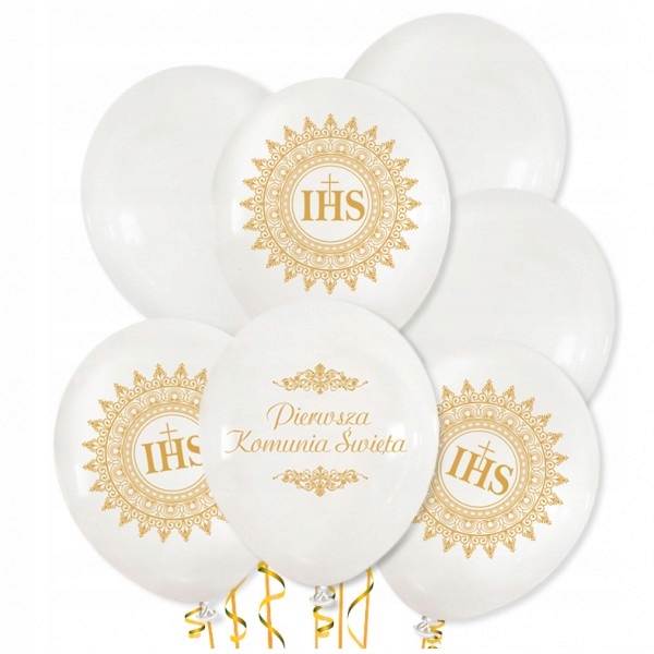 - Повітряні кульки для Причастя - Білі повітряні кулі із золотим принтом, розмір приблизно 30 см, Тема причастя - 10 шт