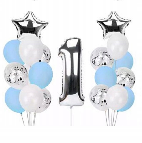 Набір повітряних куль рік цифра 1 Синій з конфетті