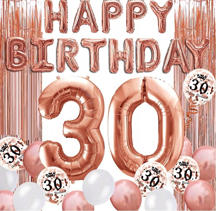 НАБІР ПОВІТРЯНИХ КУЛЬОК ДНЯ НАРОДЖЕННЯ Thirty Digit 30 YEARS ROSE GOLD Jubilee 37 штук