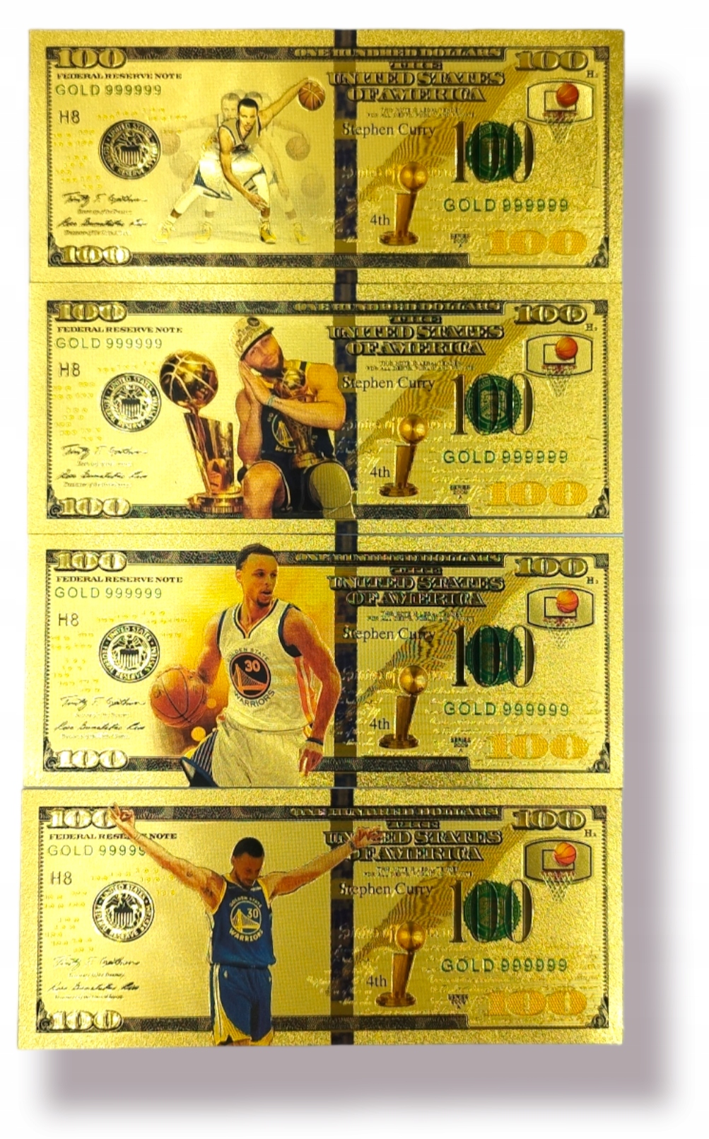 Пропоную на продаж гарний набір позолочених банкнот із зображенням Стефана Каррі.