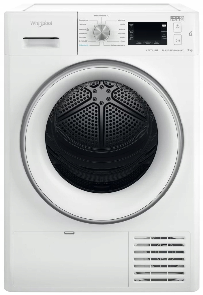 Характеристики окремо стоячої сушарки Whirlpool: унікальна ємність барабана 9 кг, завдяки якій у вас ніколи не вистачить місця. Унікальна технологія 6th Sense постійно контролює рівень вологості всередині барабана, захищаючи ваш одяг і гарантуючи ідеальні результати. Технологія теплового насоса ефективно нагріває повітря в установці, значно зменшуючи споживання енергії.