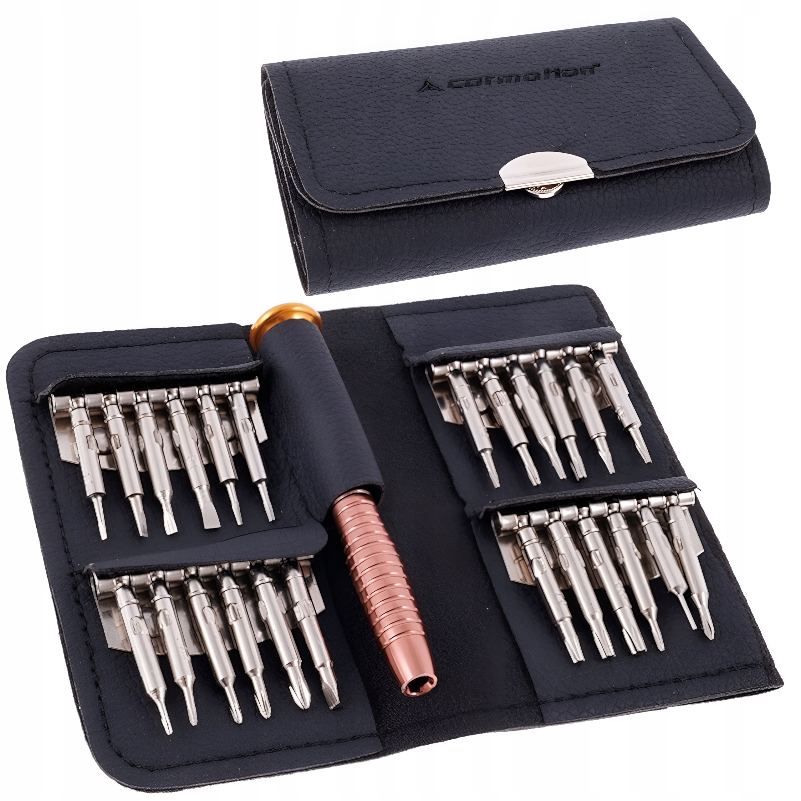 Ми представляємо вам надзвичайний набір інструментів, який дозволить вам обслуговувати та ремонтувати різноманітні маленькі пристрої. Незалежно від того, чи маєте ви справу з електронікою, побутовою технікою чи іншими пристроями, наш набір викруток забезпечить вам універсальне рішення. Набір складається з 24 різних наконечників, які підходять до всіх типів шурупів і гвинтів, що використовуються в даному типі пристроїв. Для забезпечення безпеки та зручності використання кожен наконечник ретельно прикріплений до спеціальної ручки, що виключає ризик випадкового випадання.