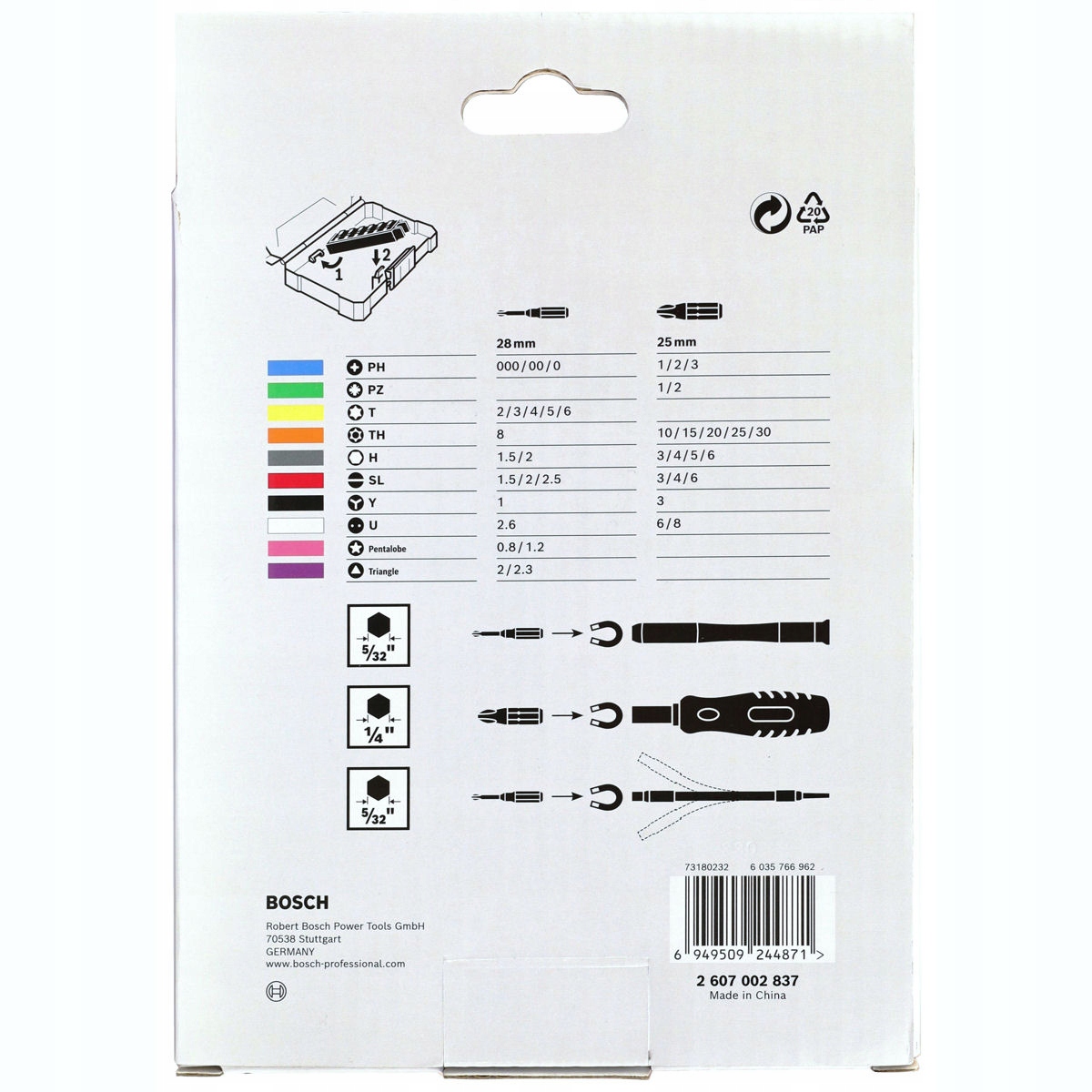 20 точних викрутаних драйвери 5/32 "28 мм довжини боші