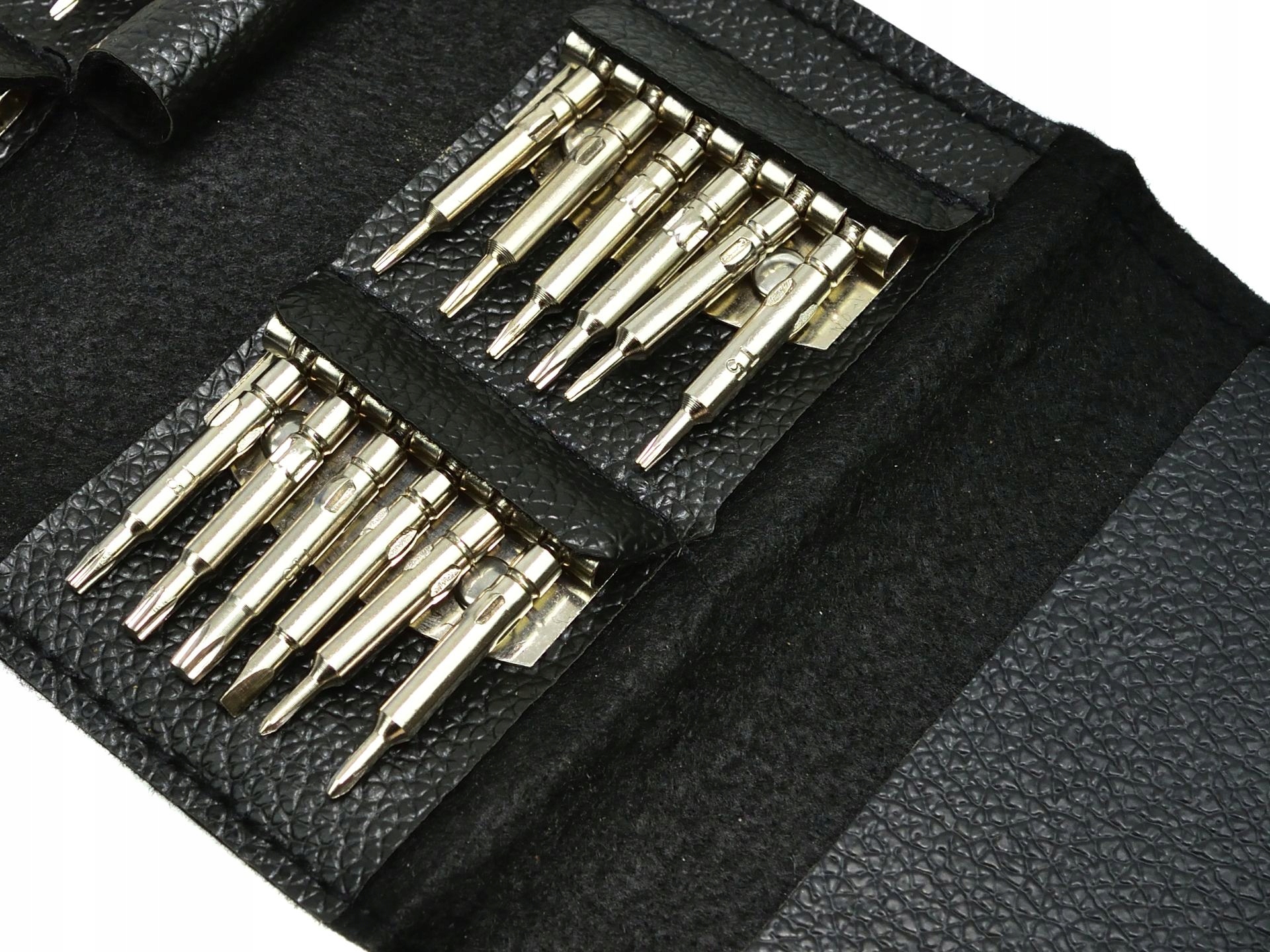 Набір точних викруток 25 в 1. Підходить для ремонту більшості цифрових виробів, різних типів комп'ютерів, мобільних телефонів, фотоапаратів, окулярів, годинників та інших робіт, де потрібна висока точність. Все це поміщено в зручний чохол з екошкіри. Набір включає 24 біти:
