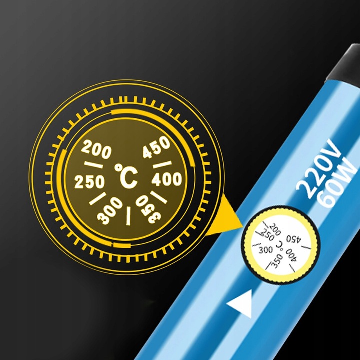 ✅ Регулювання температури: Завдяки ручці регулювання температури користувач може налаштувати її відповідно до своїх поточних потреб. Діапазон регулювання від 200°C до 450°C у поєднанні з високою потужністю пристрою дозволяє швидко спаювати та відпаювати деталі.