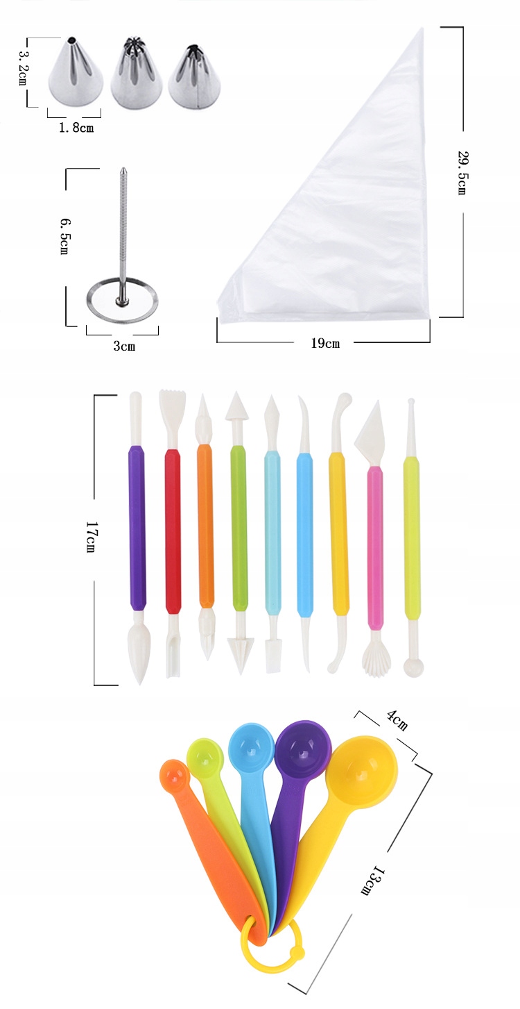 Цей 66-елементний набір для прикраси тортів-це мрія для кожного коханого солодощів! Він був створений для всіх закоханих створення прекрасних та смачних творів мистецтва у вигляді тортів. Незалежно від того, чи є ви досвідченим пекарем чи тільки починаєте прикрасити торти, цей набір забезпечить вам усі необхідні інструменти. Завдяки їм ви зможете обережно передати квіти та інші прикраси на ваші хлібобулочні вироби, надаючи їм більше витонченості та чарівності. Крім того, 2 силіконові кондитерські рукави забезпечують зручність та точність при прикрашенні. Завдяки цьому ви зможете створити різноманітні візерунки та прикраси на тортах, що робить їх більш креативними. Крім того, 5 кондитерських лічильників дозволяє точне вимірювання інгредієнтів, що надзвичайно важливо при підготовці ідеального тіста. Заначення, який можна збивати вершки та інші пасти. Завдяки цьому ви створите торти, які не тільки на смак, але й будуть красиво оформлені. Незалежно від того, хочете ви спекти торт для коханої людини чи хочете професійно розпочати свою пригоду з кондитерського продукту, цей набір буде ідеальним для вас. Не чекайте більше, замовляйте сьогодні!