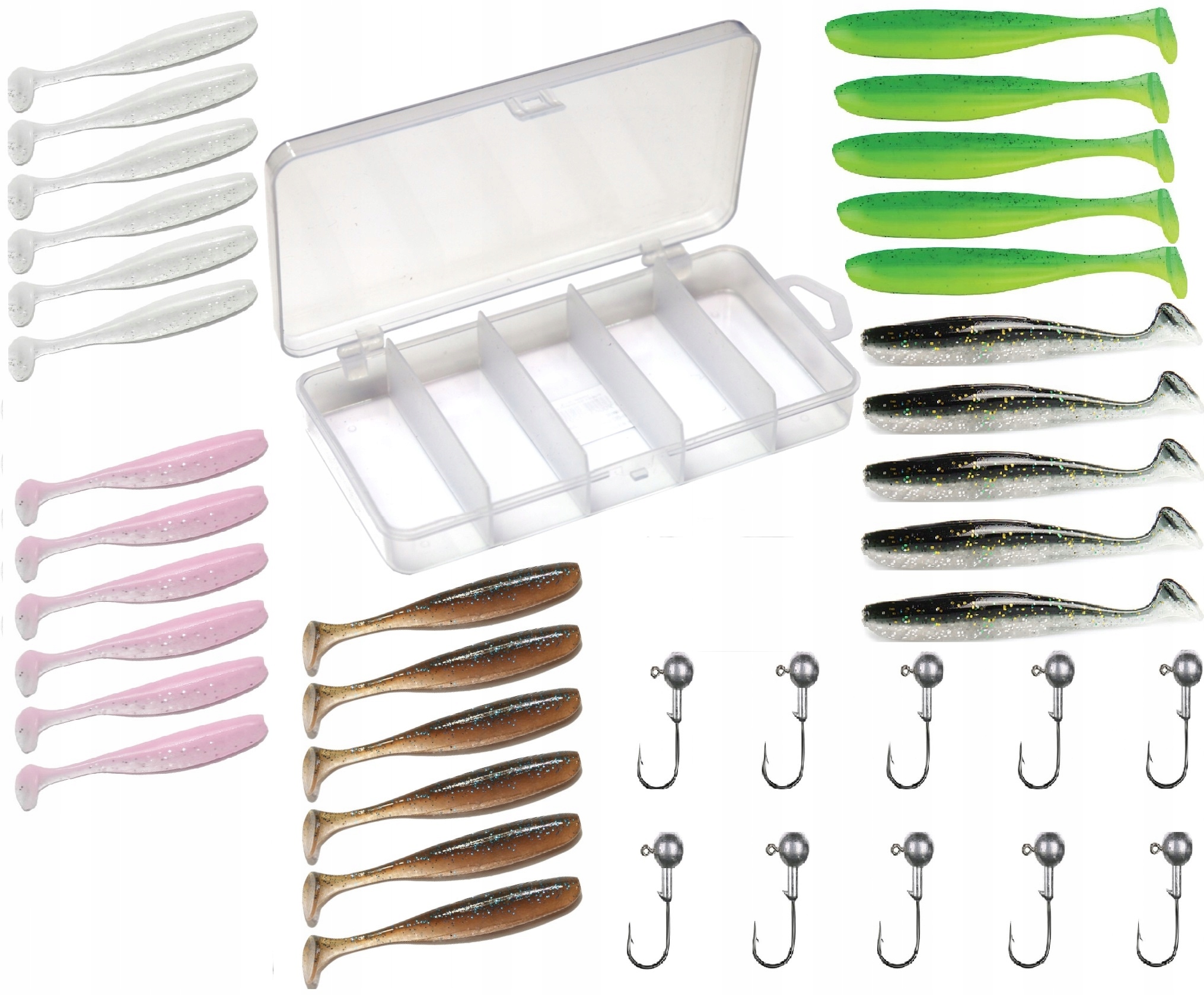 У набір входять наживки, ідеальні для окуня, язя, головня тощо. Різноманітність кольорів дозволяє задовольнити смак навіть слабо вгодованих риб. Він підійде як новачкам, так і професійним рибалкам на спінінг.