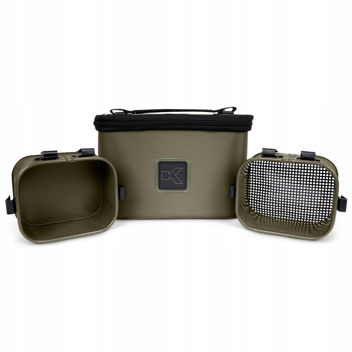 Corum Eva Bait Station Compact, створена для мобільних риболовців. Набір включає дві внутрішні контейнери, один з яких на дні має 3 -мм сітку, корисну при просуванні невеликої кількості наземного. Контейнери можна прикріпити поза сумкою під час використання, забезпечуючи великий робочий простір. Під контейнерами достатньо місця для ящиків з основою та приманкою. Wyposażona W Wygodne Uchwyty do Przenoszenia I Super Wytrzymały Zamek Błyskawiczny.