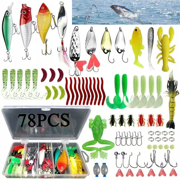 - Вміст пакету: 78шт приманки в коробці обладнання. 4 Гачки надзвичайно різкі. Використовуйте за допомогою цих приманок.