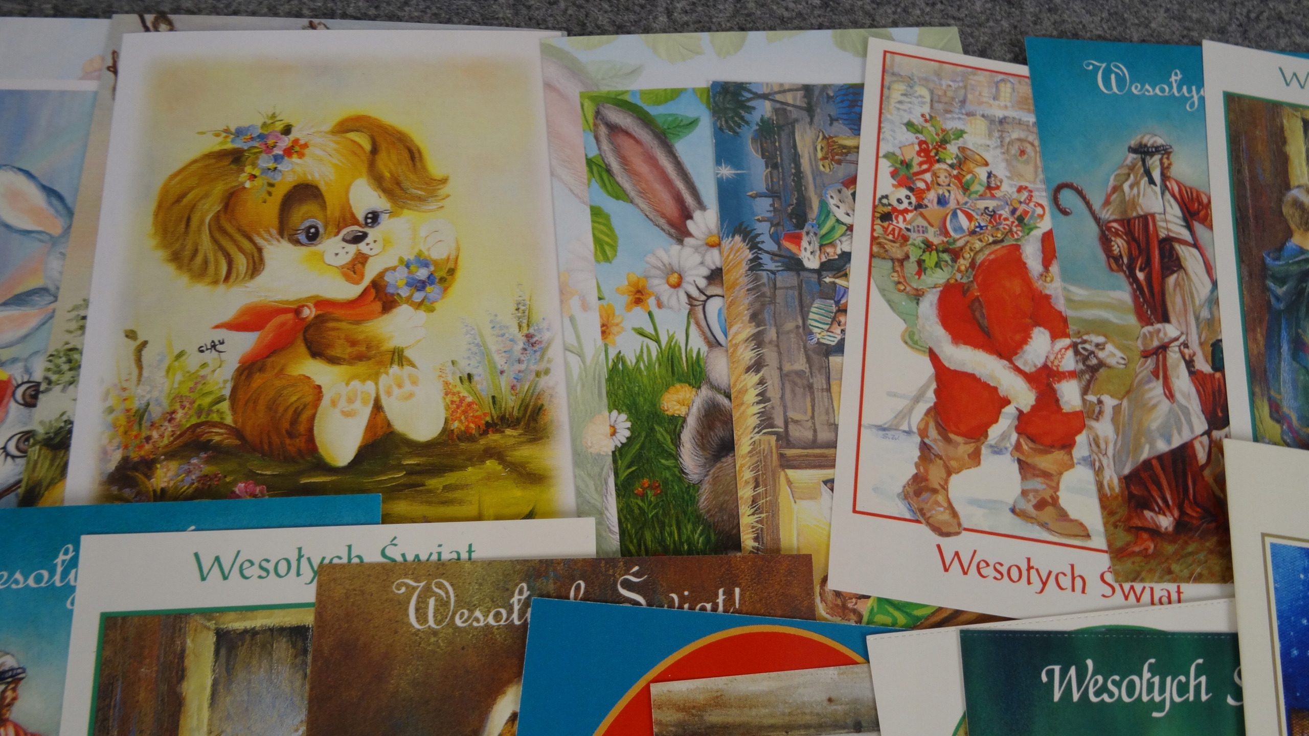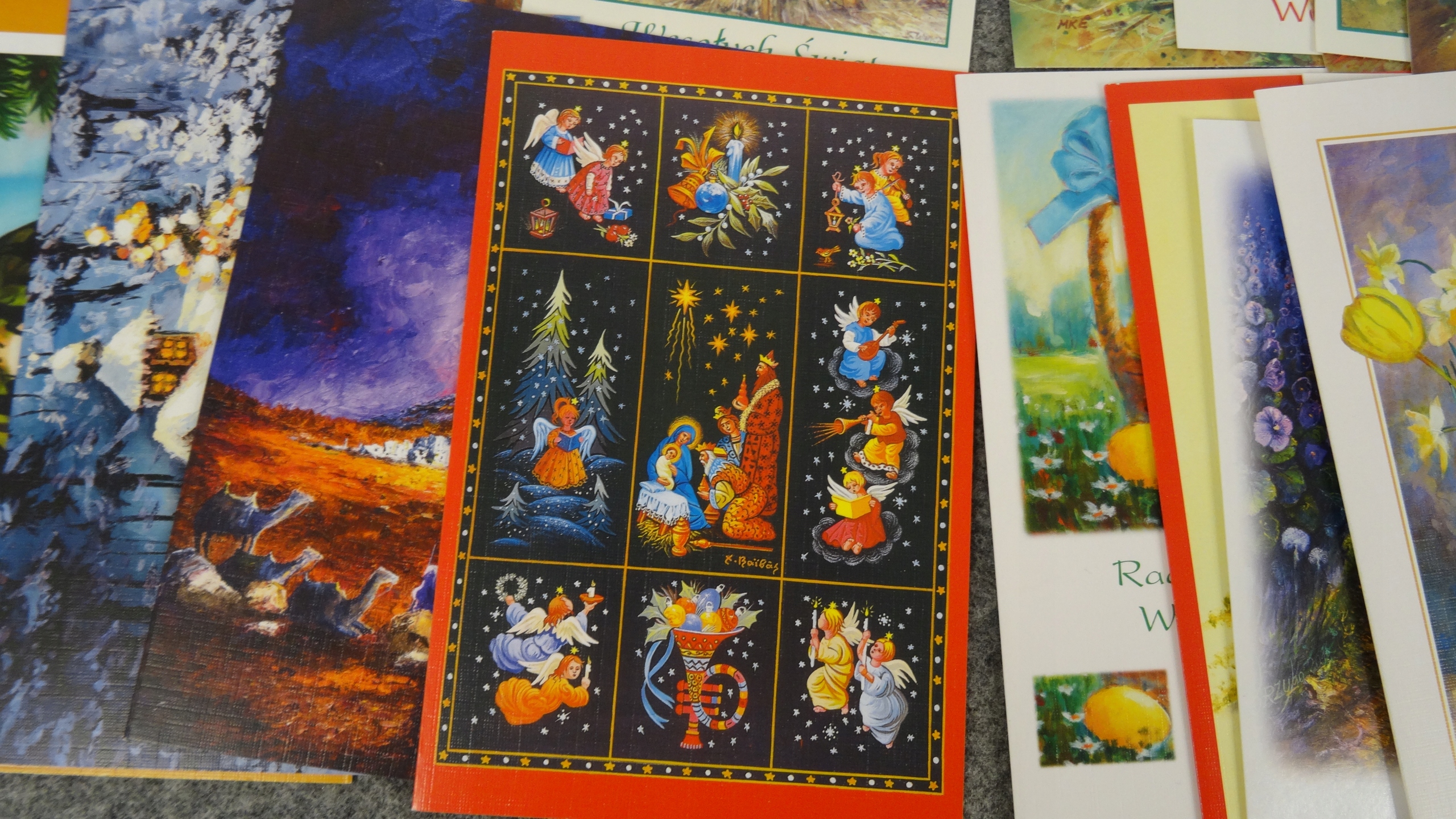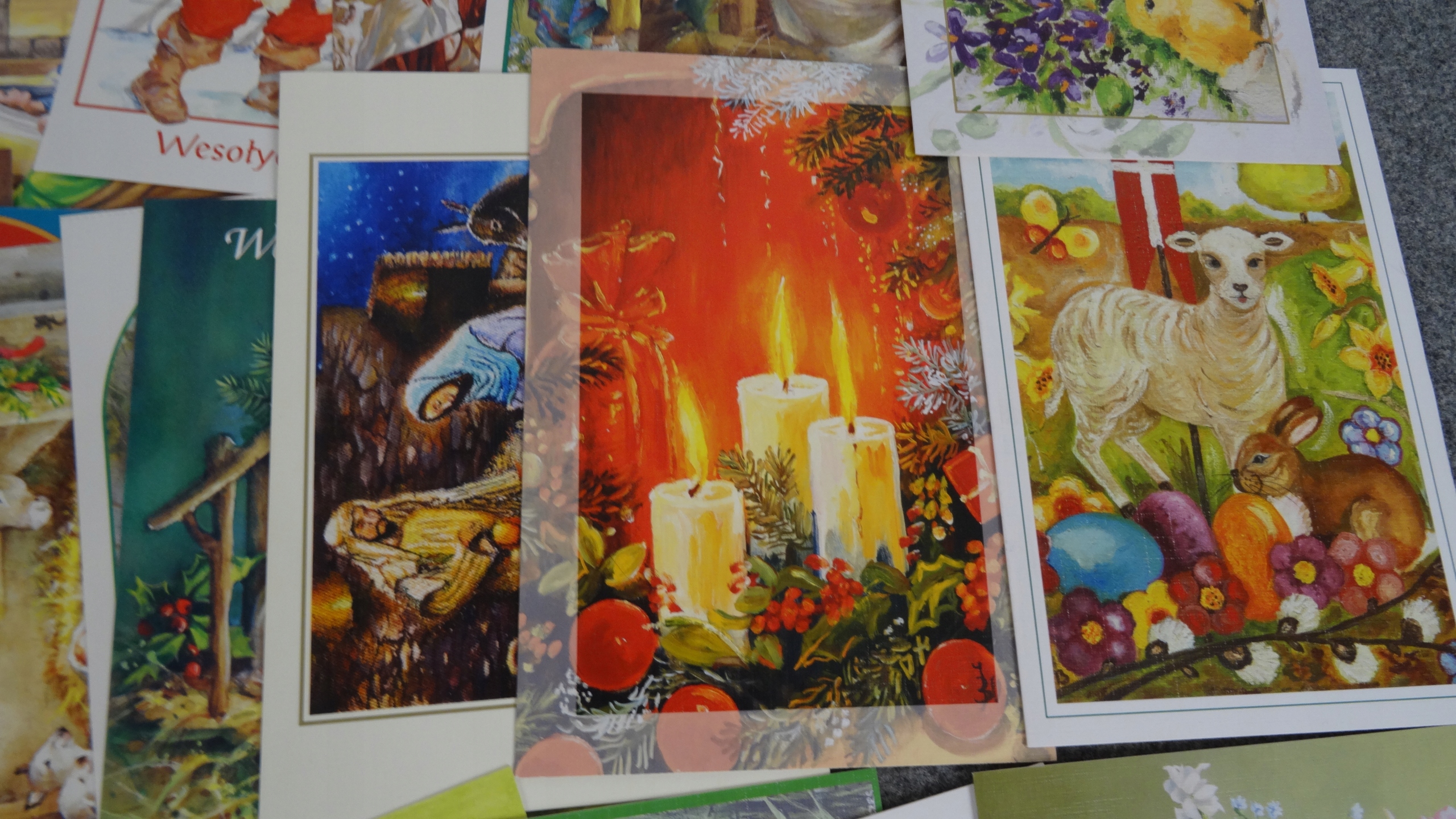 Набір із 44 різних листівок і принтів; випадковий, свято, іменини, Великдень, Різдво. Деякі сторінки відкриті, щоб писати всередині.