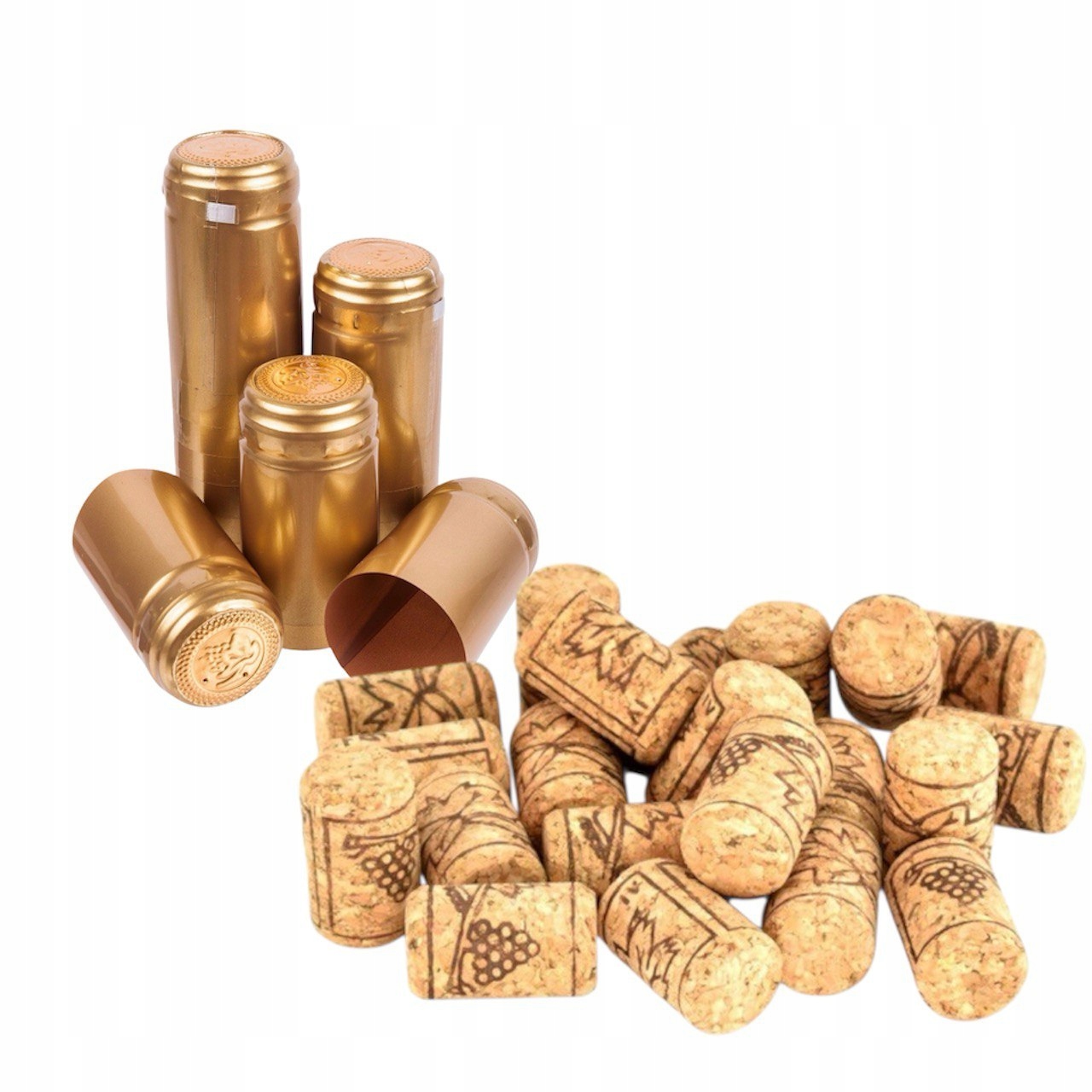 Комплектація - містить 10 циліндричних пробок 24/38 мм, 10 золотих термозбіжних кришок з ремінцем.