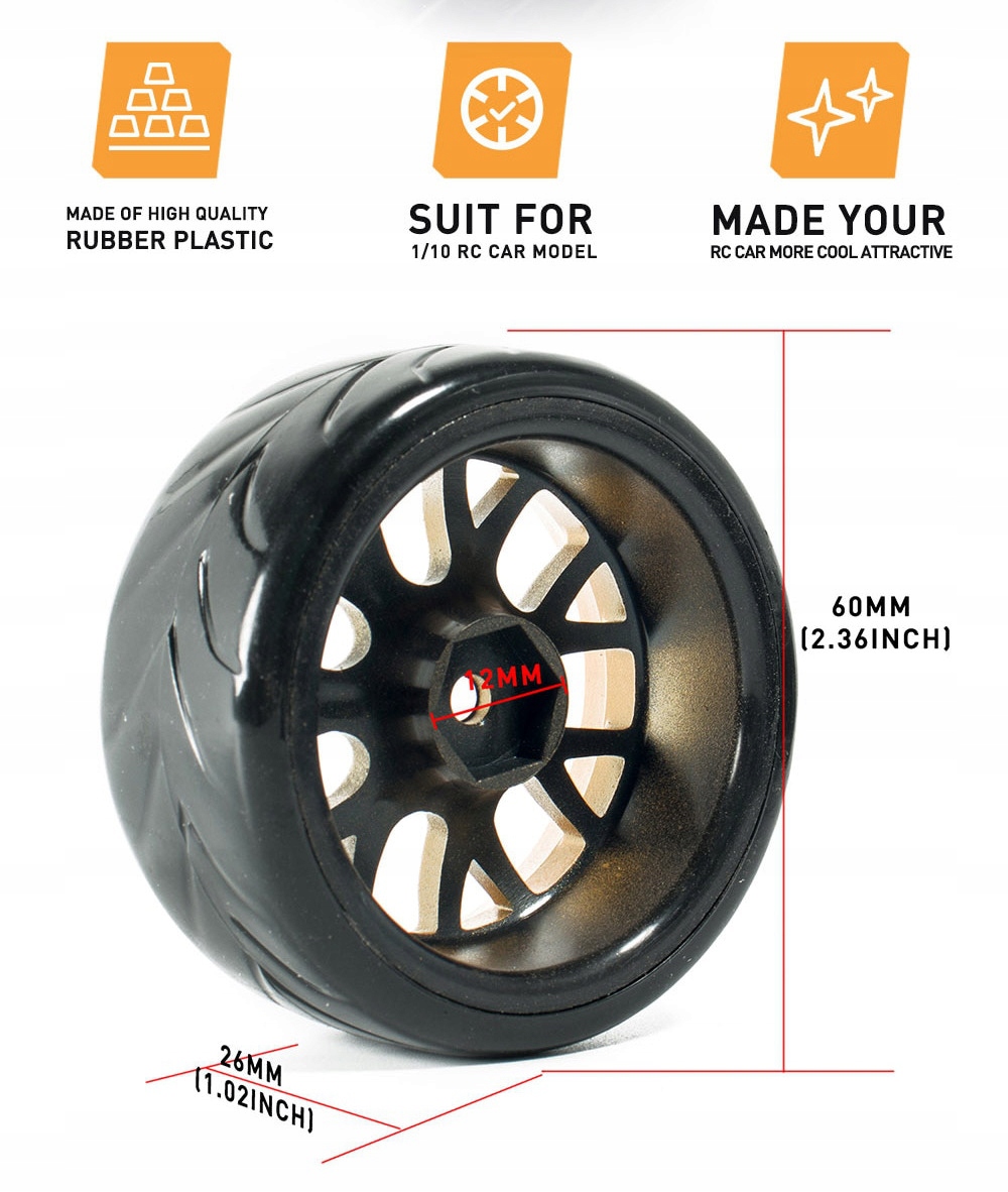 Застосовується до всіх моделей RC On-Road 1/10 із кріпленням Hex 12 (Traxxas Tamiya HPI Kyosh тощо)