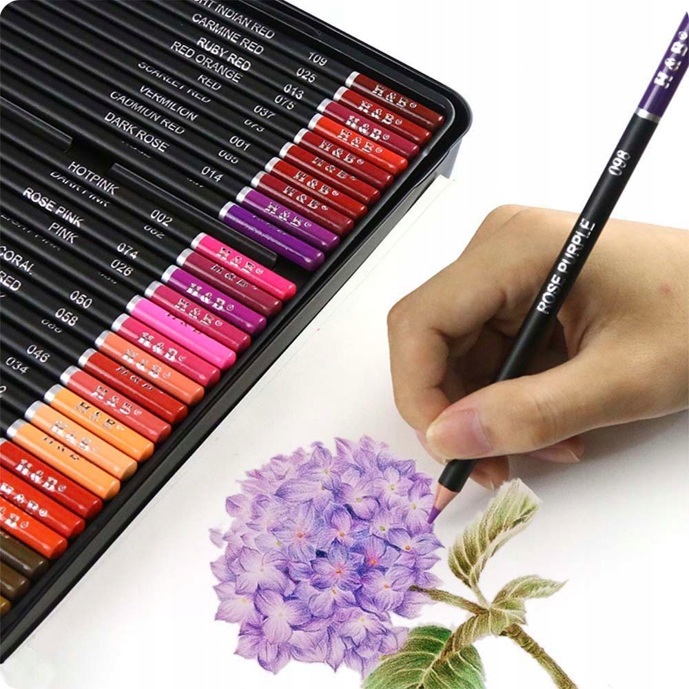 Набір професійних олівців бренду H&B упакований в зручний металевий футляр. Відрізняється багатою палітрою з цілих 72 прекрасних кольорів. Високоякісні барвники забезпечують гарні, чіткі кольори. Завдяки спеціальним відділенням ви будете впорядковані та швидко знайдете потрібний колір.