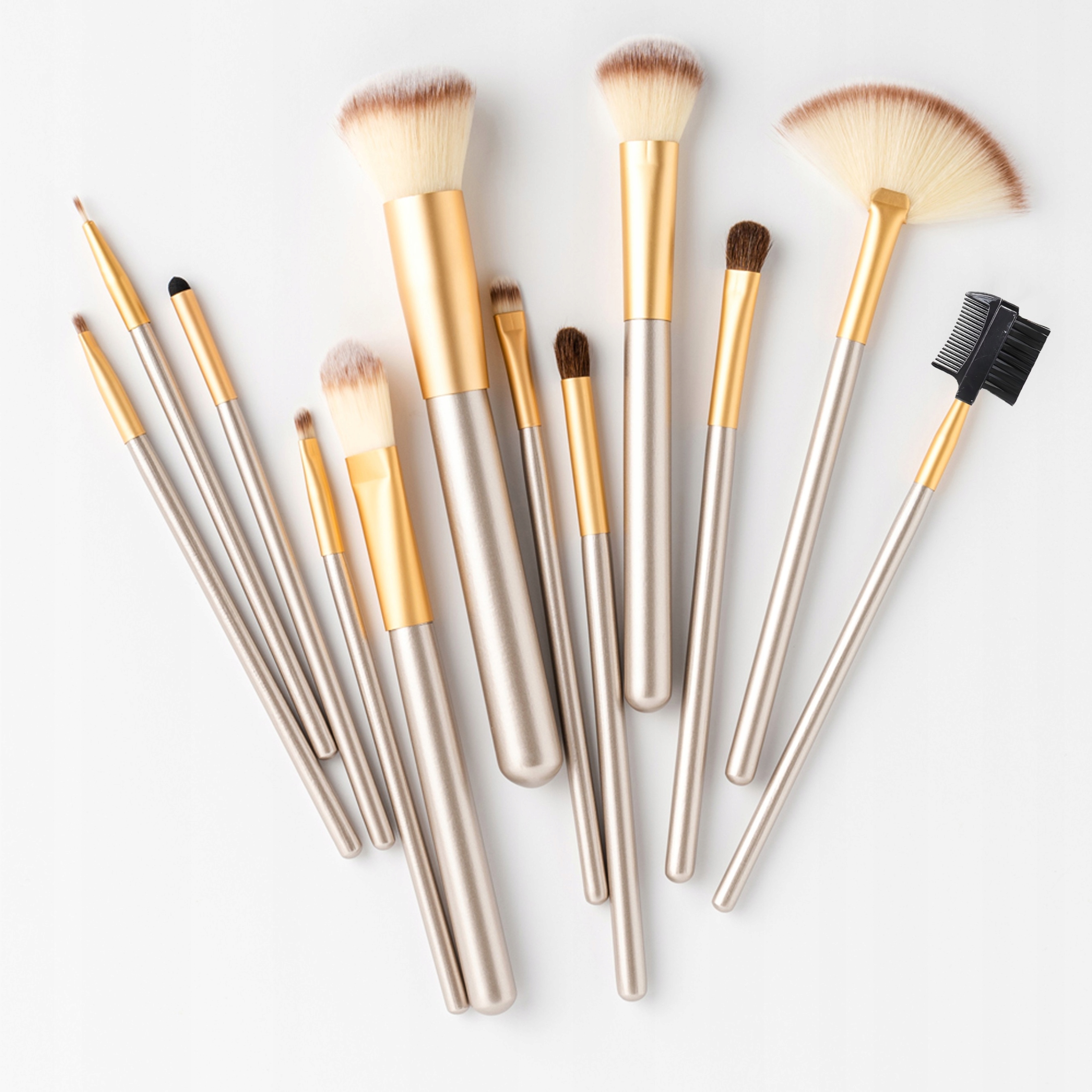 Набір із 12 пензлів із синтетичної щетини на чорному кінчику — ідеальне рішення для людей, які цінують акуратний і ідеальний макіяж. Завдяки гладкій синтетичній щетині пензлі не затримують косметичні продукти, зменшуючи їх витрату. Щетину також легше підтримувати в чистоті та вона менш сприйнятлива до деформації.