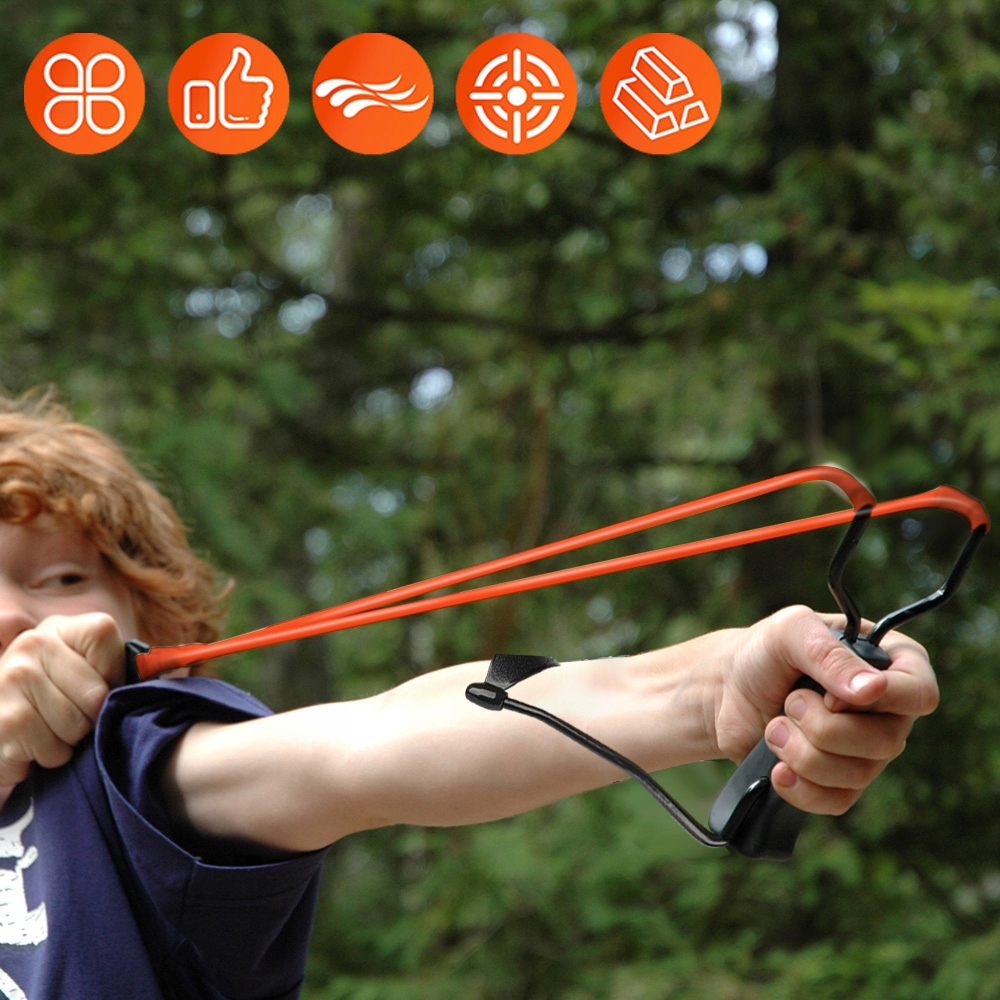 🏅🏅 Міцна конструкція для стабільності та точності: виготовлена з міцних матеріалів — металу та пластику — ця мисливська рогатка гарантовано прослужить. Додатковий стабілізатор зап’ястя забезпечує кращий контроль, роблячи кожен удар точним і повторюваним.