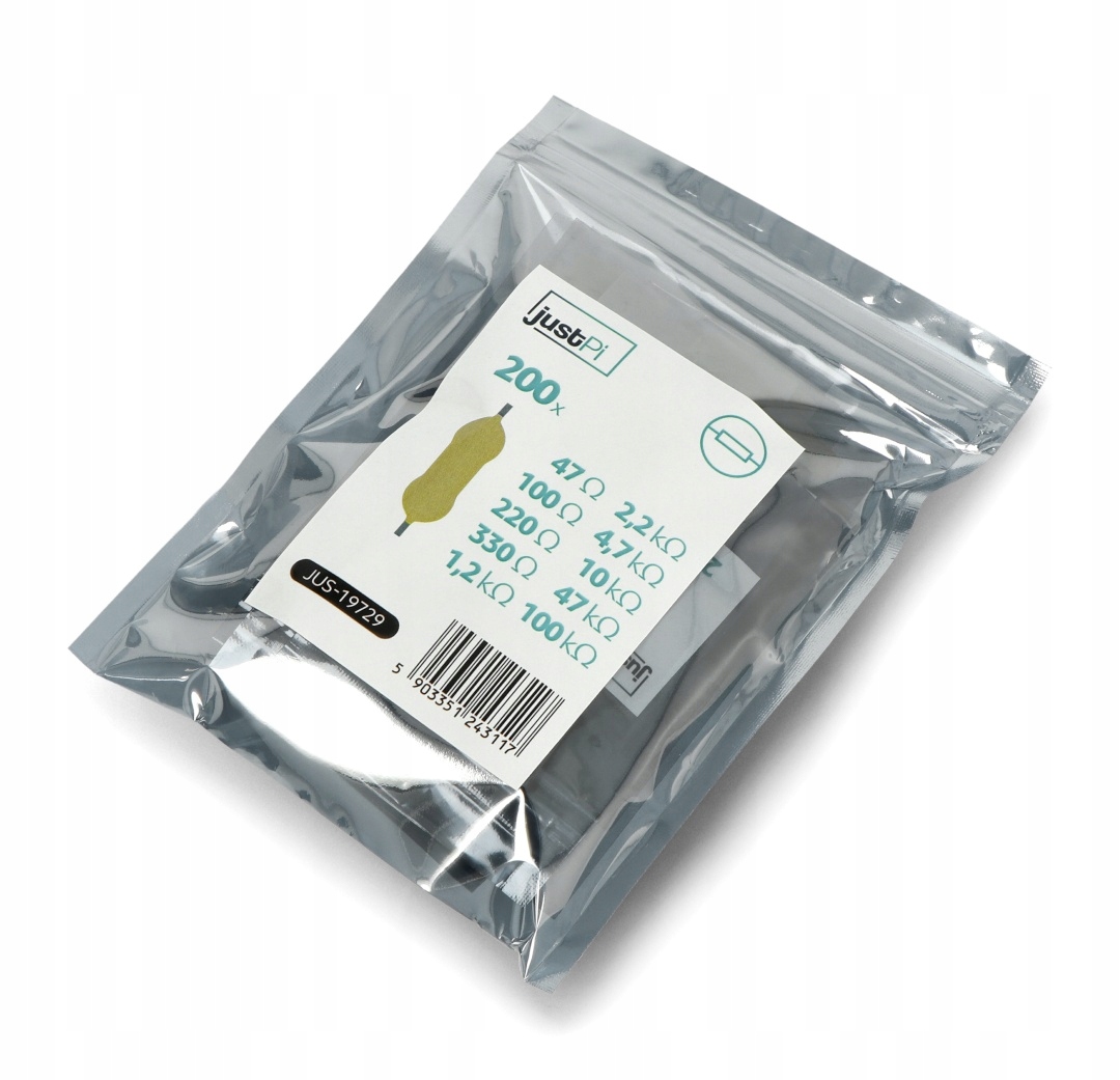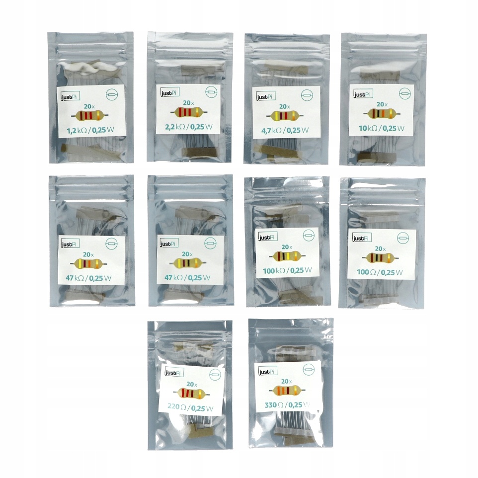 - 4 Набір резисторів CF THT 1/4 Вт, як описано - 200 шт. - 20 шт. кожного номіналу.