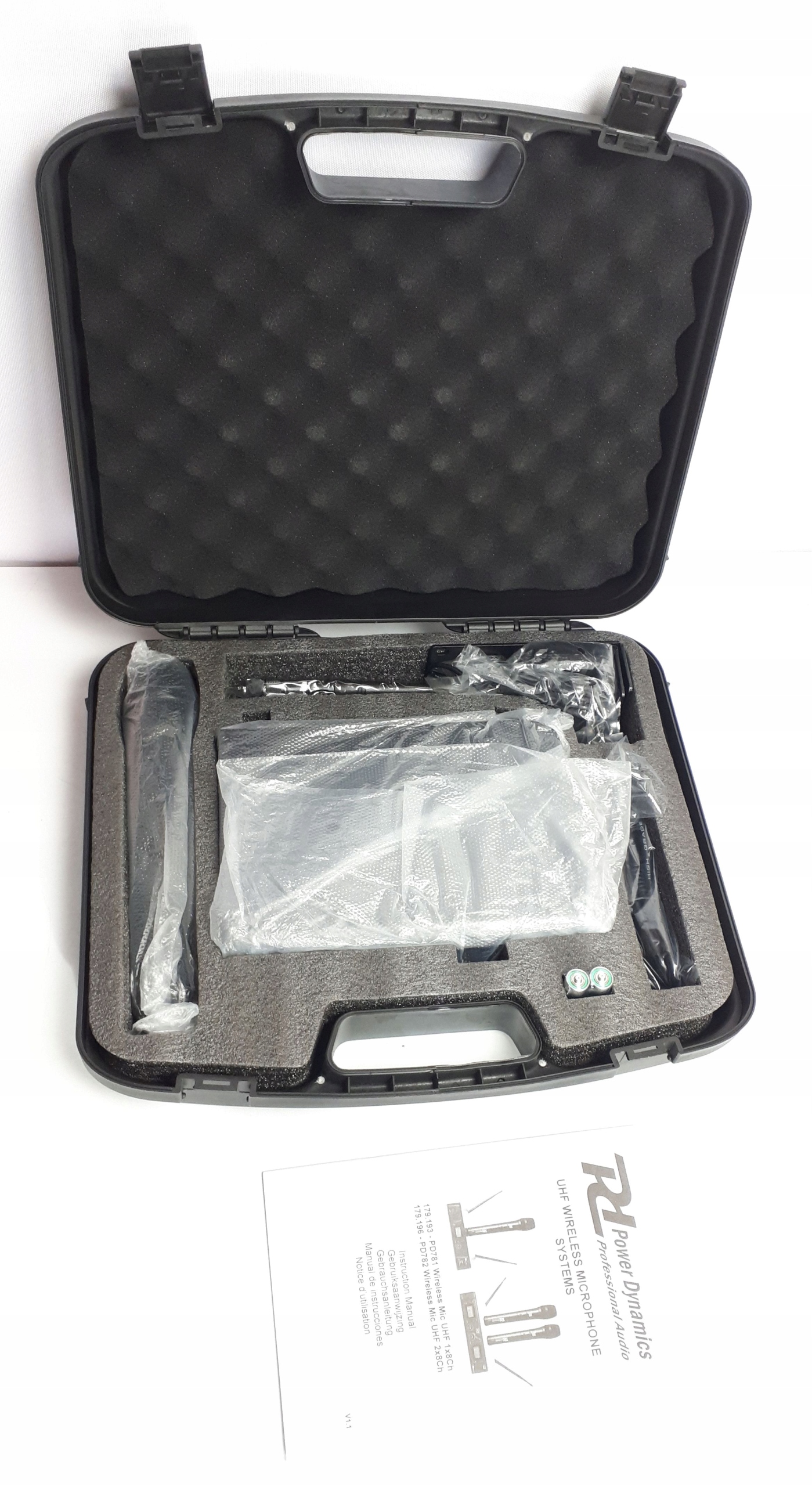 Power Dynamics PD781 – 1x 8-канальна професійна бездротова УВЧ-система з портативним мікрофон, приймач і міцний футляр для безпечного транспортування. Завдяки рідкокристалічному дисплею на ручці мікрофона зміна каналів передачі проста і зрозуміла. Мікрофон працює на частотах 863-865 МГц і ідеально підходить для використання на сцені, під час презентацій, лекцій, КАРАОКЕ та для запису вокалу.