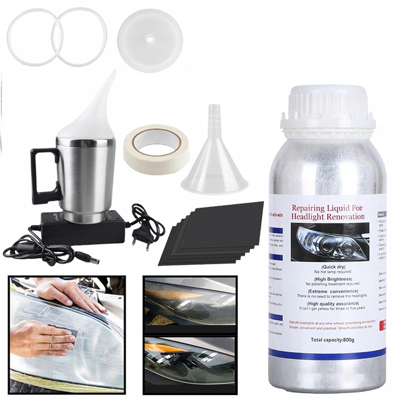 - Рідкий парний полімер: Рідкий парний полімер у цьому продукті гарантує, що ваші фари відновлять свою оригінальну пишність та яскравість.