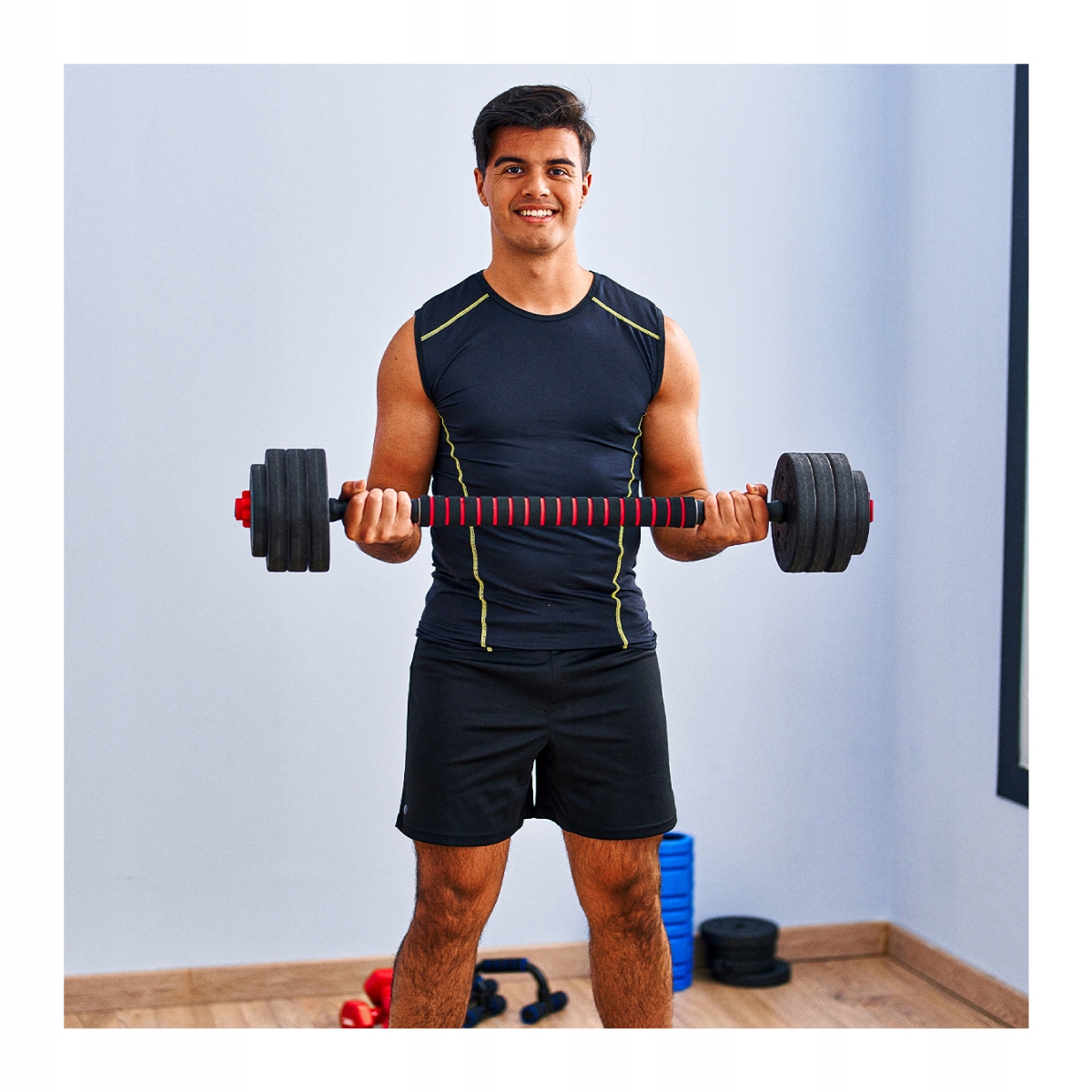 - Два комплекти композитних гантелей з роз’ємом дозволяють розподіляти навантаження двома різними способами – ширшим і вужчим хватом. Завдяки цьому можна легко виконувати вправи для всіх частин тіла.
