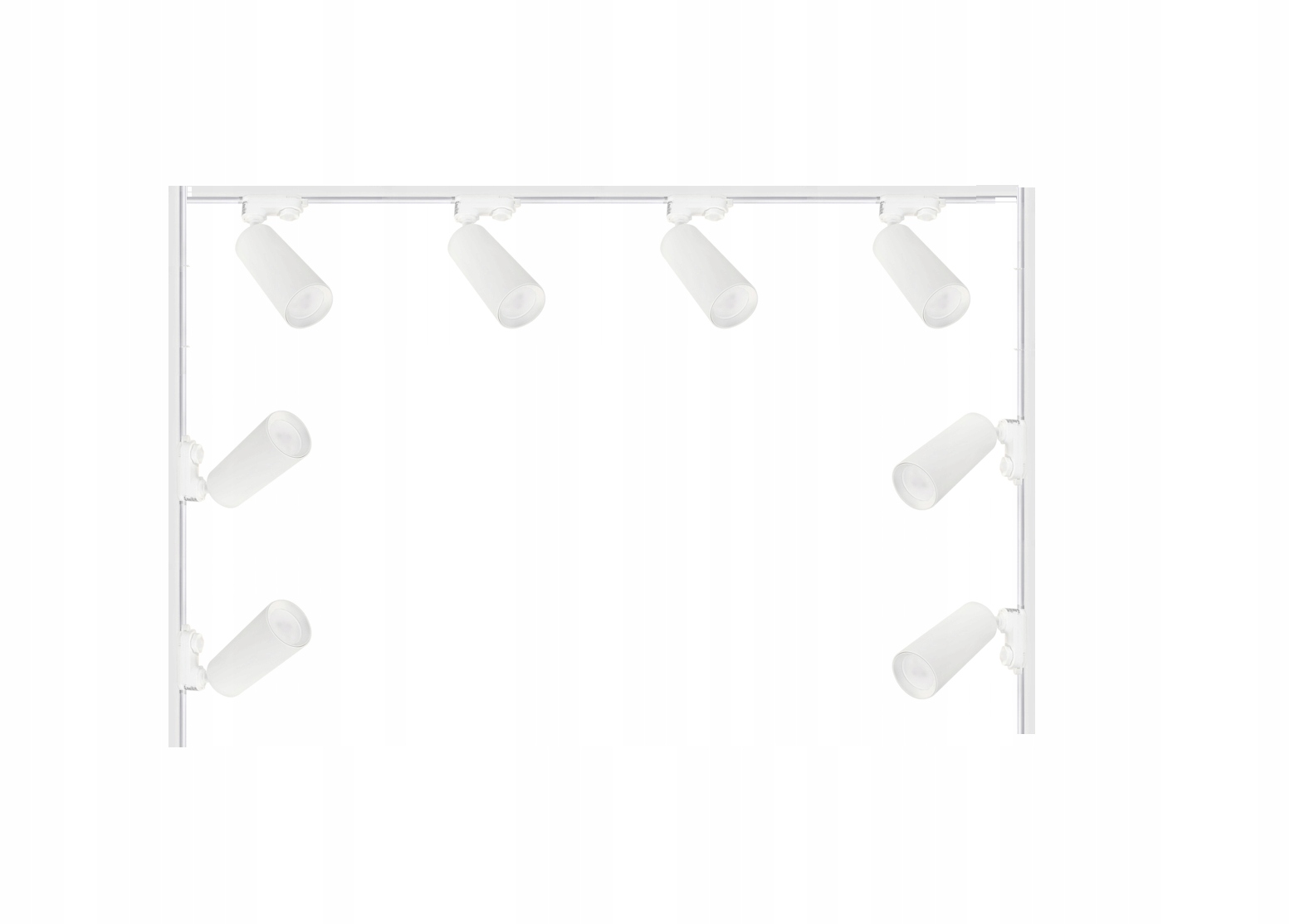 Набір з 8 трифазних прожекторів для лампочки GU10 і трьох двометрових рейок з двома роз’ємами