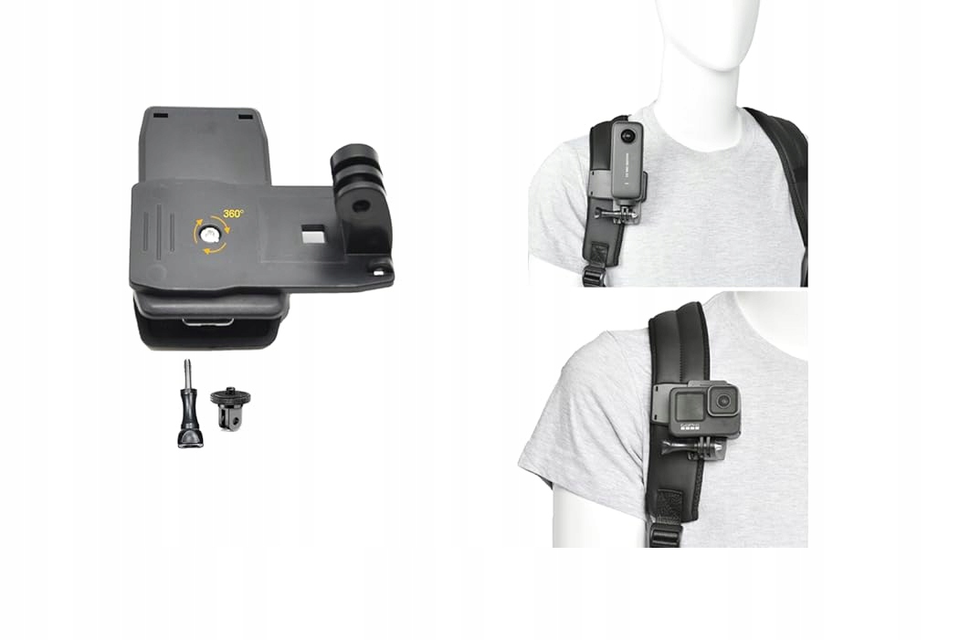 - Легко регульований кут камери: затискач для рюкзака дозволяє повертати на 360 градусів, ремінець на зап’ясті дозволяє повертати на 180 градусів