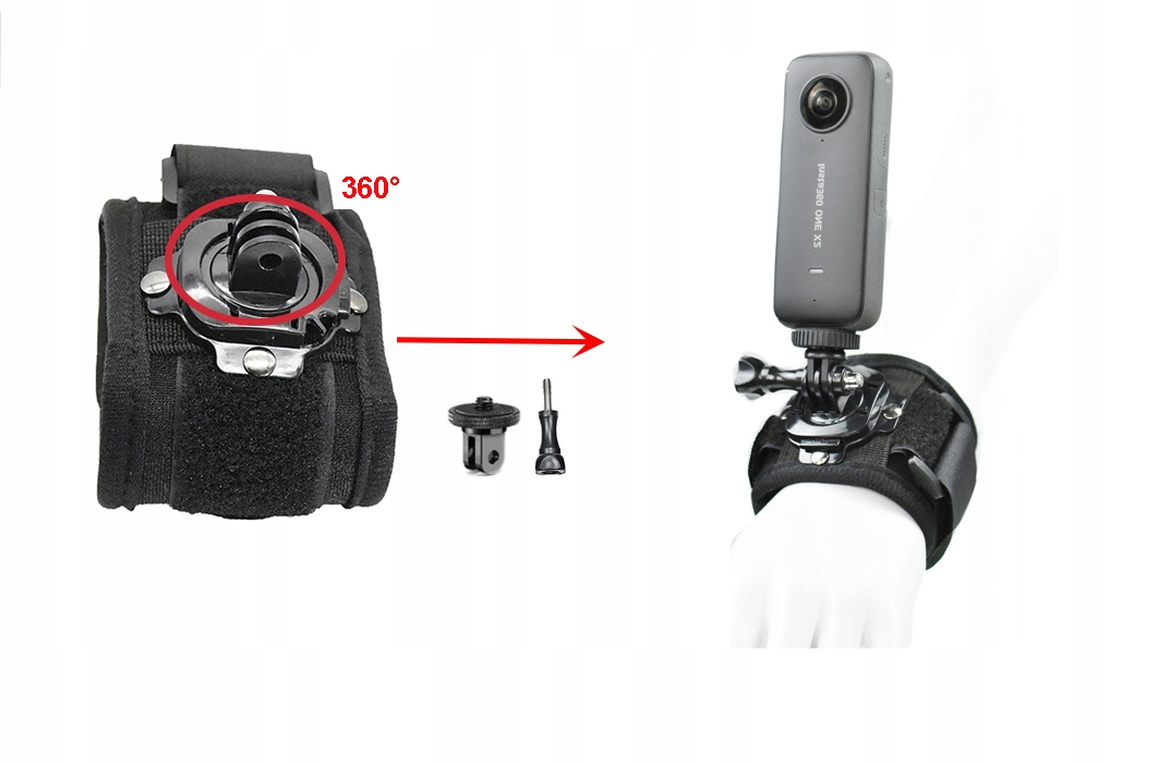 - За допомогою цього тримача для ремінця ви можете прикріпити камеру до зап’ястя. Керувати та регулювати кут камери легко. Підходить для гри у футбол, банджі, стрибків з парашутом, їзди на велосипеді та інших видів спорту.