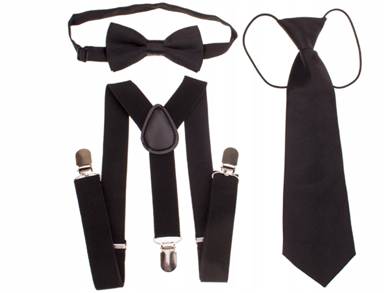 Підтяжки, краватка-метелик і краватка одного кольору.