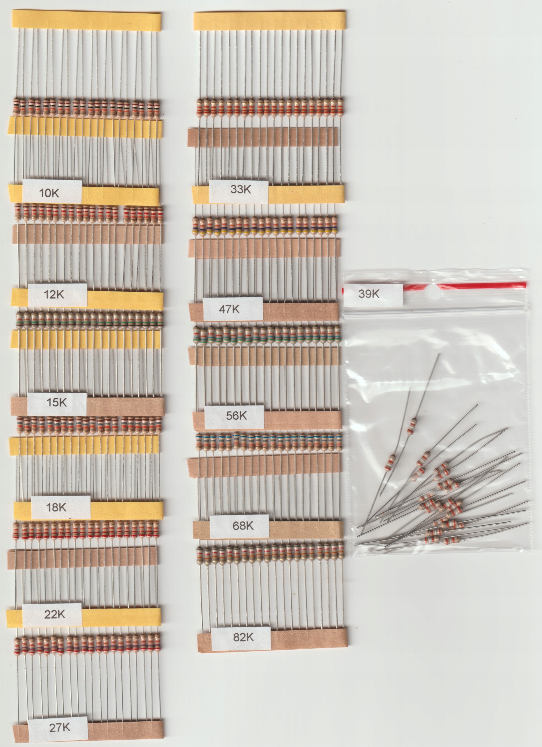 Набір резисторів THT 0,25 Вт 10K-82K Серія E-12