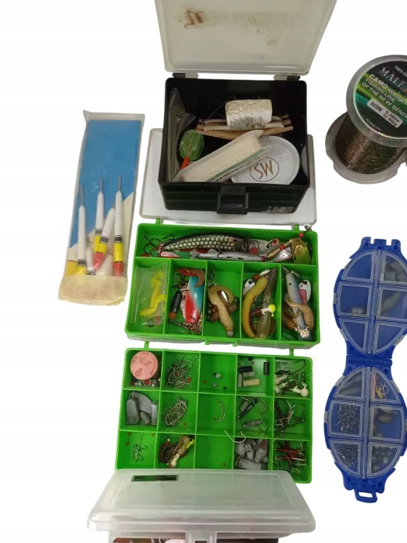 Тема продажу - це багатий набір риболовних аксесуарів, ідеально підходить для початківців та просунутих риболовців. Він містить різноманітні елементи, необхідні під час лову приманки, через гачки, для плавання та ґрунту. Відмінний набір для початку та як доповнення до рибальського обладнання.