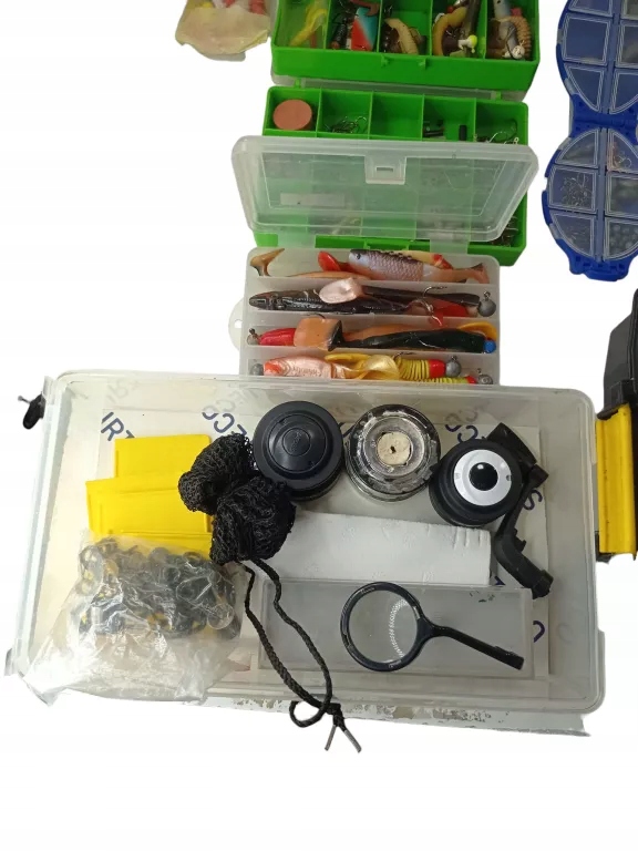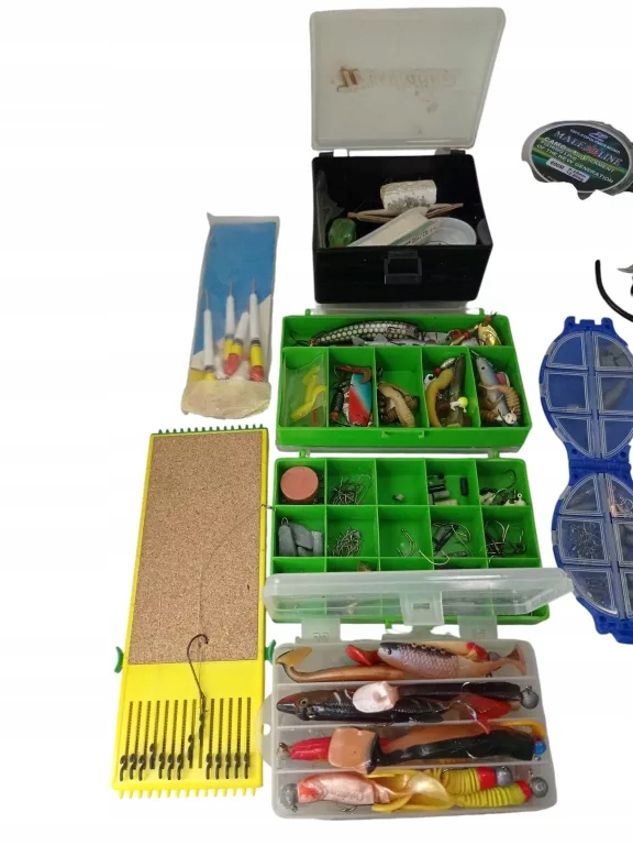 Набір риболовних аксесуарів з гуми, ротації, поплавців, гачків, лідерів, ведучих, головки, коробки, вен, кошиків \