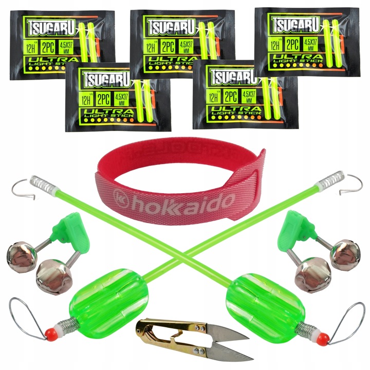 ✅ Елементи набору: гачки, кошик для наживки, трубка проти заплутування, поплавці, стопери, світлячки, волосінь