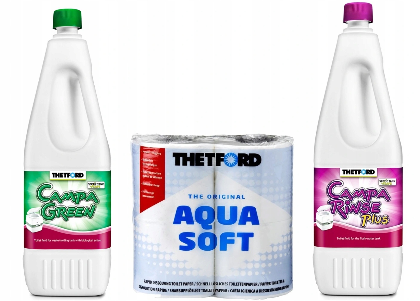 Набір рідин для туристичних туалетів 2 х 1,5 л Campa Green + Campa Rinse Plus + набір паперу Aqua Soft (4 рулони)