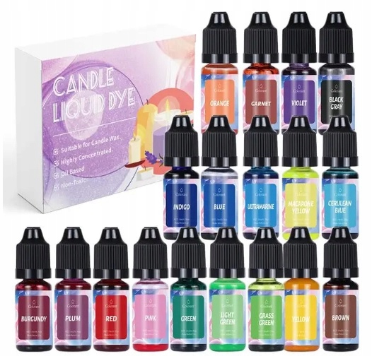 Рідкі барвники для свічок, натуральні воски (соєвий віск, пальмовий віск, ріпаковий та інші), парафін . Найсильніші та найефективніші рідкі свічкові барвники, доступні на ринку.