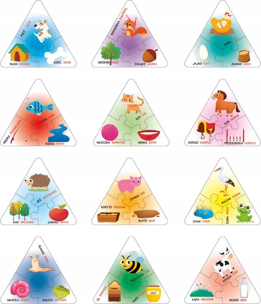 Набір із 12 польсько-англійських дощок. Кожна дошка з 3 частин, 15x17 см