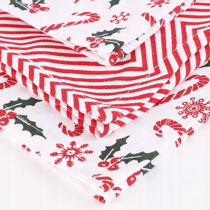 Подаруйте чарівну різдвяну атмосферу своїй кухні за допомогою цього чарівного кухонного набору. У набір входять 3 бавовняні тканини, прикрашені різдвяними мотивами - цукерками, падубом, сніжинками та геометричними візерунками в червоно-білих тонах. Усе це упаковано в стильну сумку з ручками в тон, яка також чудово підійде як подарункова упаковка.