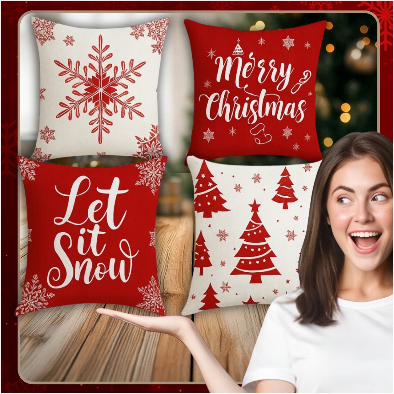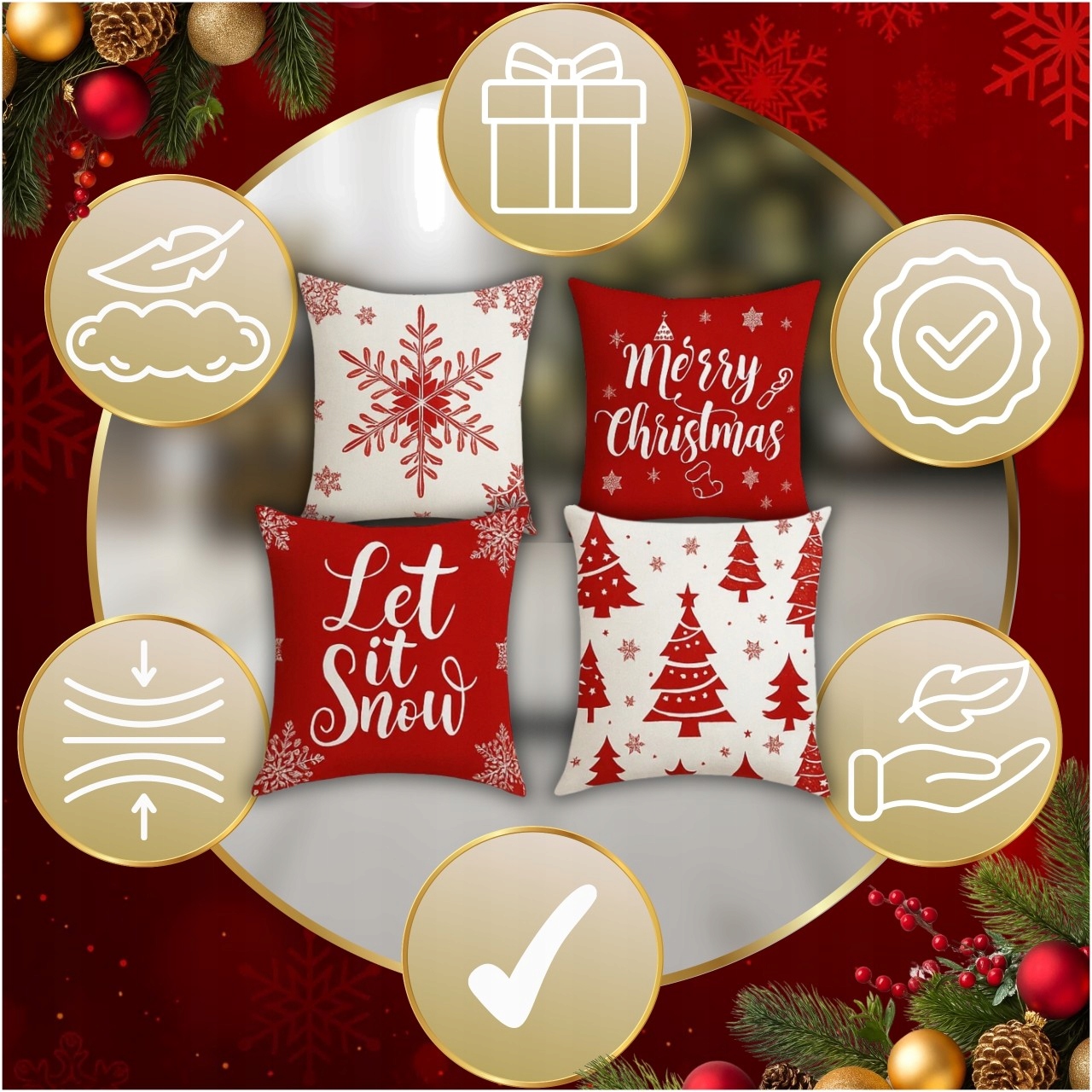 НАБІР РІЗДВЯНИХ НАВОЛОЧОК З 4 НАВОЛОК 45x45 СМ НА РІЗДВО