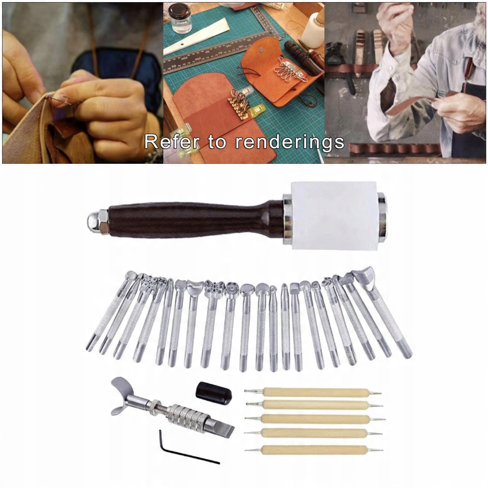 Набір інструментів для виготовлення шкіри: шкіряний набір, що включає 20 шт. шкіряних штампів, 1 шт. вертлюг, 1 шт. шкіряний молоток, 5 шт. ручки для початківців і професіоналів.