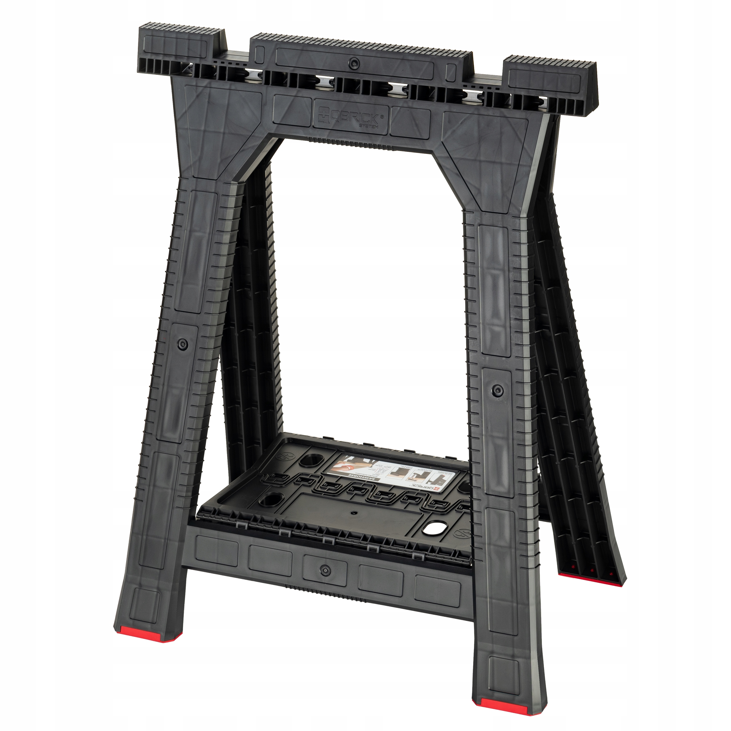 - anti -klip ноги та полиця: кобила мають ноги, що не мають слизу, які разом з полицею між ніг забезпечують високу стабільність під час роботи. Полиця оснащена ручками, які можна використовувати для зберігання ручних інструментів, що збільшує функціональність кобили.