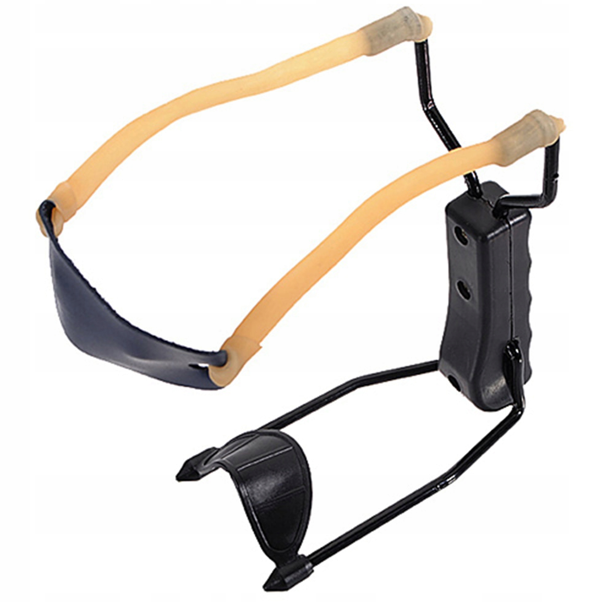 Рогатка має міцні гумки зі спеціальним шкіряним кошиком. Ми можемо кидати м’яч на відстань до 400 м.