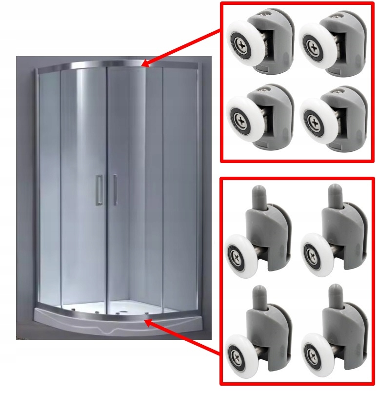 Набір роликів для верхніх і нижніх душових дверей, 20 мм, 8 шт