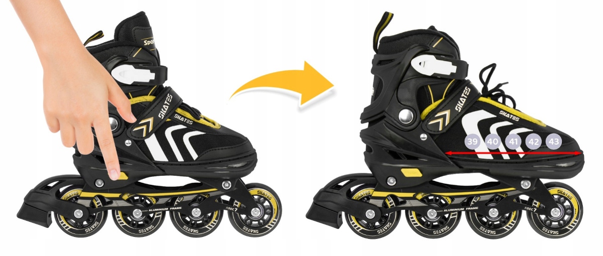 Представляємо вашій увазі набір роликових ковзанів 4 в 1 та дитячих роликових ковзанів у розмірах 39-43 жовтого кольору, які дозволять юним любителям спорту отримати динамічні та різноманітні враження!