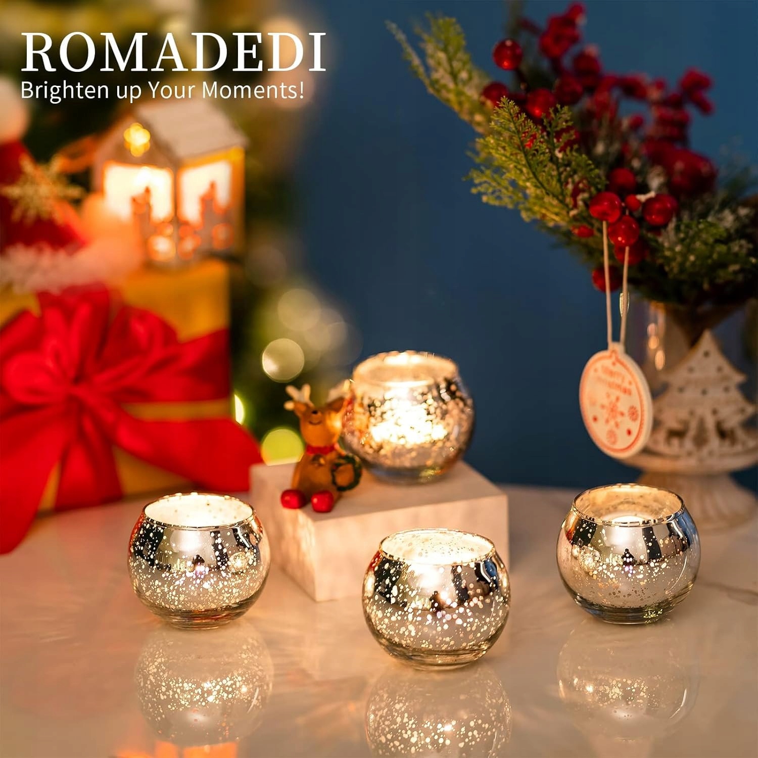 Набір Romadedi з 24 скляних свічників для обігрівачів, срібні прикраси