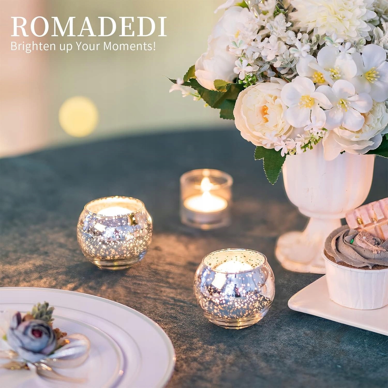Ромадеді свічники для обігрівачів, скляних свічників, срібла, для прикраси вітальні, прикраси столу, весілля, Різдва, набір 24 свічників для обігрівачів, обігрівачів