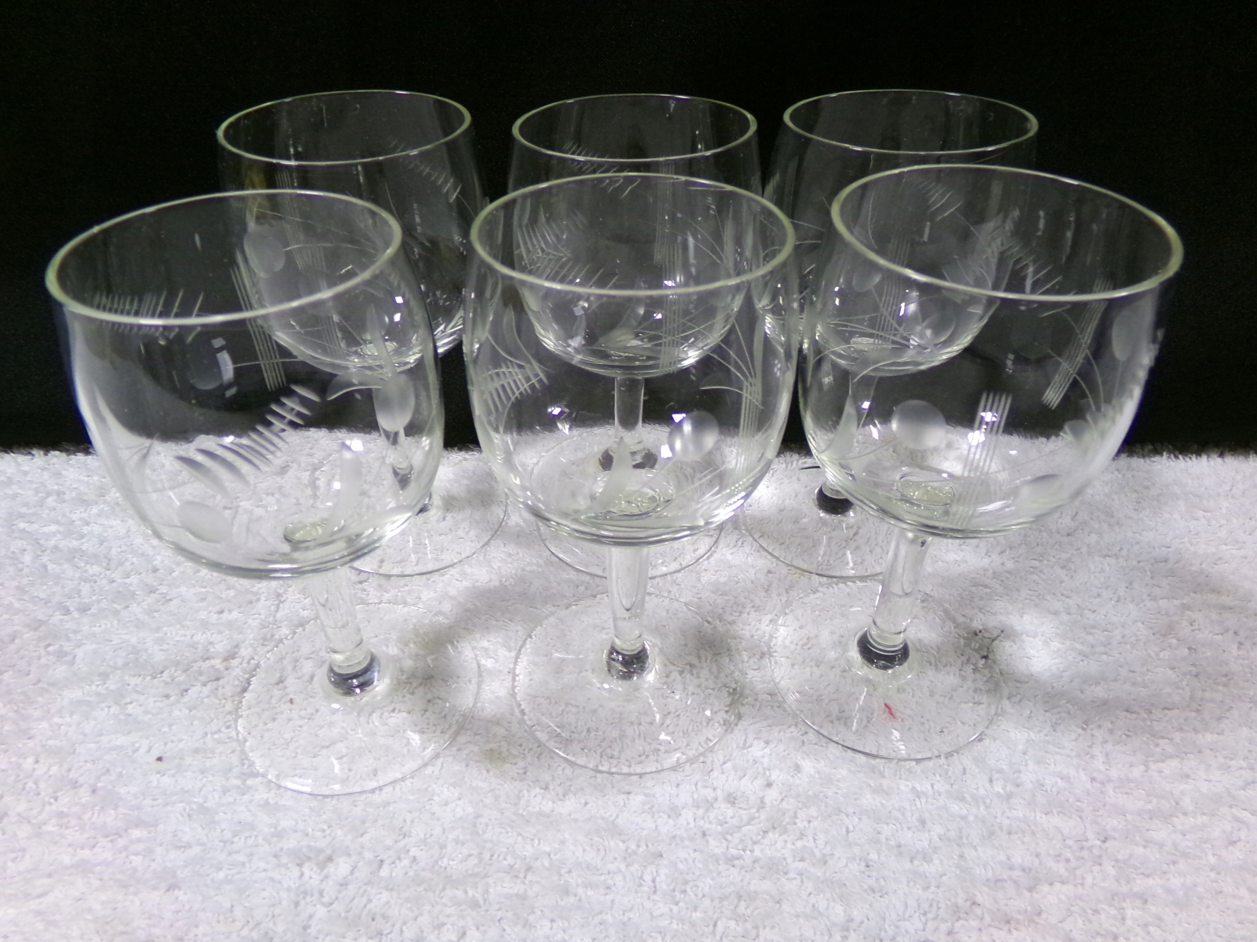 набір з 6 окулярів з висотою 12,5 см, діаметром центру 5,5 см, ємністю 150 мл, вагою 0,46 кг. Стан дуже хороший, без пошкоджень.