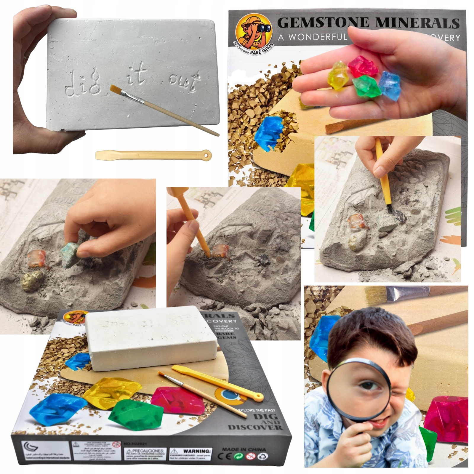 Запросіть дитину у захоплюючий світ, щоб відкрити! Набір розкопок - це надзвичайна геологічна пригода, яка стимулює уяву, вчить терпіння та розвиває ручні навички. Ваша дитина стане справжнім дослідником , невеликим археологом , копаючи кольорові кристали з гіпсового блоку.