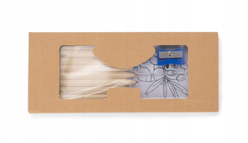 Набір малюнків для маленького художника включає 10 дерев’яних олівців, лінійку 15 см, точилку та книжки-розмальовки (приблизно 20 малюнків) в екологічній картонній коробці.