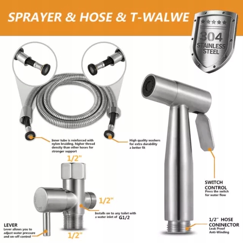 Потужне обладнання - насолоджуйтесь роками зручного чищення за допомогою розпилювача туалету. Ваш розпилювач і плетений шланг виготовлені з нержавіючої сталі 304, а фітинги – з латуні, нейлону та гуми.