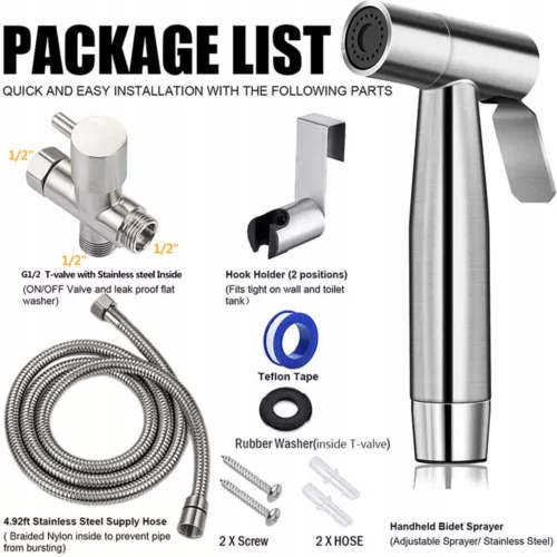 Потужне обладнання - Насолоджуйтесь роками зручного прибирання за допомогою насадки-розпилювача для туалету. Ваш розпилювач і плетений шланг виготовлені з нержавіючої сталі 304, а фітинги – з латуні, нейлону та гуми.