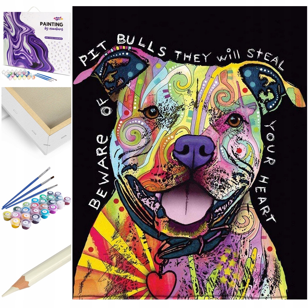 ПРИМІТКА: Цей аукціон призначений для малювання за номерами собаки Пітбуль, розміром 50x40 см, НА РОЗТЯЖКУ РОЗТЯЖКУ